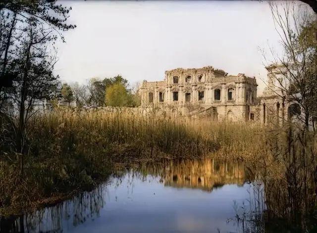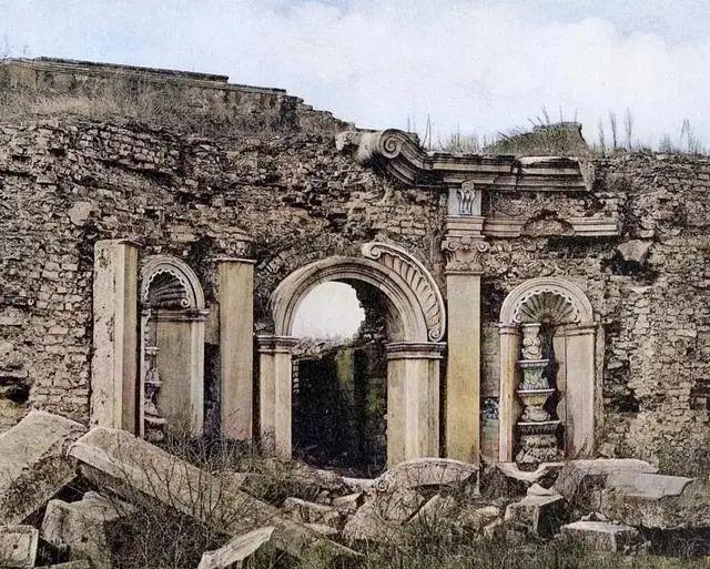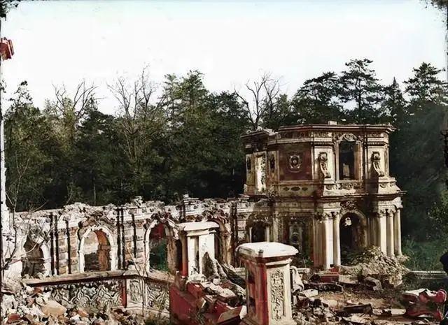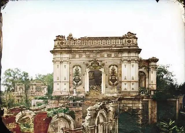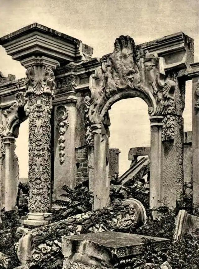 1860 年英法联军纵火三日,5200 亩园林(相当于 5 个故宫)的木构建筑几乎全毁,但砖石结构的西洋楼、舍卫城等仍有遗存。1875-1877 年,法国人谢满禄、德国人奥尔末用镜头记录下惊人画面: