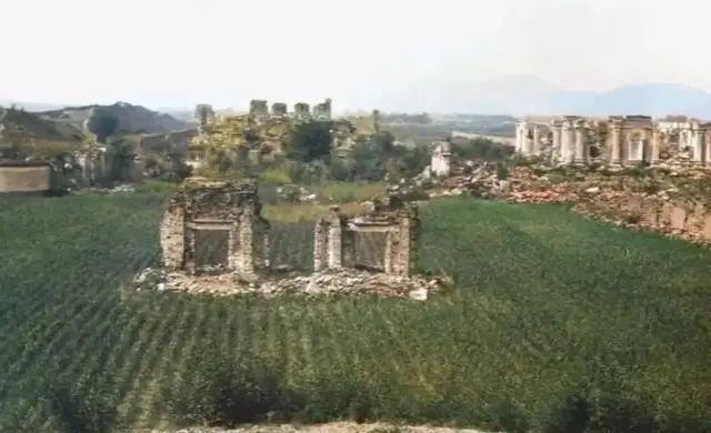 △宫殿的残骸,周围种满了庄稼
